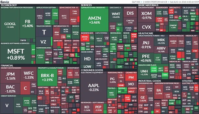 Komponenty indexu S&P 500 v týdnu do 10. srpna 2018