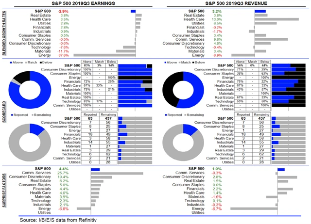 Statistika dosud oznámených výsledků amerických firem za 3Q2019