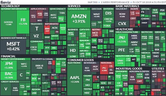 Komponenty indexu S&P 500 v týdnu do 18. října 2019