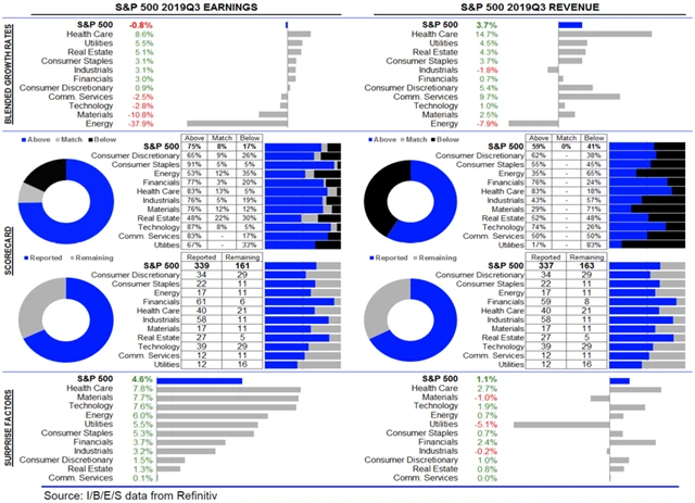 Statistika dosud oznámených výsledků amerických firem za 3Q2019