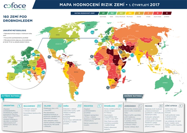 Vysoká závislost Mexika na vývozu do USA, který tvoří 7 % HDP země, v kombinaci s vyšší inflací a poklesem investic vedly Coface ke snížení ratingu rizikovosti podnikatelského prostředí Mexika na úroveň B, což představuje značné riziko. Oproti tomu zlepšení podnikatelského prostředí se předpokládá v Argentině, která by po složitém roce měla začít těžit z uskutečněných hospodářských reforem. V případě Argentiny, kterou tolik neohrožuje nástup Donalda Trumpa, zvyšuje Coface rating na B.