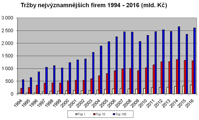 Tržby stovky největších českých firem loni stouply o 11 procent