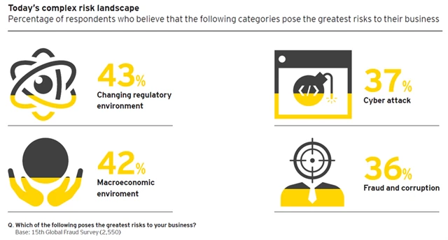 Riziko podvodu považují respondenti celosvětově za nejzávažnější hned za riziky spojenými s vývojem makroekonomického prostředí (42 %) a za změnami legislativy upravující podnikání (43 %). Průměrná hodnota 36 % nicméně ¨zastřešuje velké rozdíly. Zatímco v rozvinutých zemích považuje korupci za problém jen 20 % manažerů, ve střední a východní Evropě je to 47 % a v Latinské Americe 74 % respondentů.