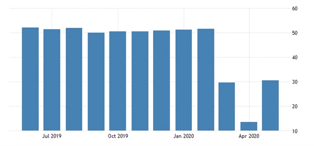 Index podnikatelské aktivity v květnu vystoupil na 30,5 z dubnových 13,5 bodu. Zůstal však hluboko pod klíčovou padesátibodovou hranicí, která je předělem mezi růstem a poklesem aktivity.