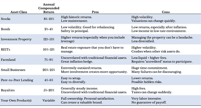 Možnosti investování jsou téměř nekonečné a nevyčerpatelné. Ne každá investice je ale vhodná pro všechny. Následující přehled se zaměřuje na devět tříd aktiv, u kterých vyzdvihuje jak jejich hlavní klady, tak největší zápory.