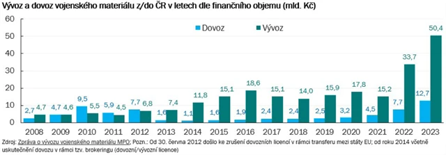 Mezi ty, kdo z nového přístupu k evropské bezpečnosti výrazně těží, patří i tuzemský obranný průmysl. Ten zahrnuje asi 400 společností zabývajících se vývojem, výzkumem, výrobou, obchodem, servisem, modernizacemi a souvisejícími službami. Před rokem 2021 se roční hodnota vývozu vojenského materiálu z Česka po delší dobu pohybovala v průměru kolem 16 miliard korun, po invazi Ruska na Ukrajinu ale v roce 2022 narostla na 34 miliard a předloni už padla meta 50 miliard korun. Mezi největší odběratele českých zbrojařů patří Ukrajina, Polsko, USA a další členské státy NATO.