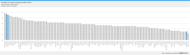 Velmi překvapivé je také špatné umístění Švýcarska v kategorii "ochrana investora". Tento index měří sílu ochrany minoritních akcionářů v situaci, kdy management firmy zneužije korporátní aktiva pro svůj osobní prospěch, jak uvádí Světová banka.