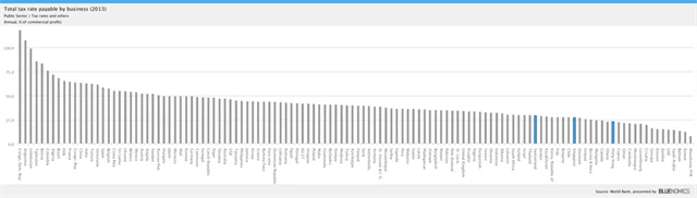 Naopak velmi pozitivním faktem je celkové daňové zatížení, tedy celková částka daní a povinných odvodů (včetně odvodů z mezd) ze strany podnikatelů po odečtu všech uznatelných nákladů. Tento podíl daní na celkovém firemním zisku je v uvedených třech zemích opravdu velmi nízký.
