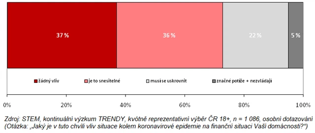 Zásadní problémy má již nyní zhruba 5 % obyvatel, tedy asi 400 tisíc dospělých. Další pětina dospělých (22 %) se uskromnila, sahá do rezerv nebo odkládá investice. Lidé věří, že česká ekonomika má nejhorší za sebou a propad se již nebude prohlubovat. Nový pokles ale může přijít s propouštěním, opětovným zhoršením epidemiologické situace, případně v důsledku nízké efektivity vládních opatření na podporu hospodářství.