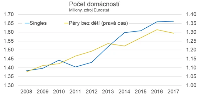 Přirozená poptávka (tedy ne ta spekulativní) roste v posledních deseti letech kvůli celkovému růstu počtu obyvatel a souběžnému štěpení domácností na menší jednotky. Od roku 2008 vzrostl v důsledku toho počet domácností o bezmála 380 tisíc, a to především kvůli nárůstu počtu domácností takzvaných singles a párů bez dětí.