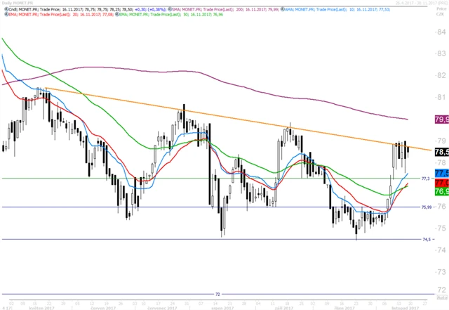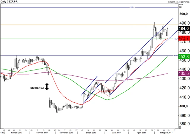 ČEZ, Komerční banka a MONETA Money Bank: České blue chips pohledem technické analýzy (20. 11. 2017)