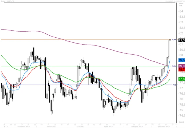 ČEZ, Komerční banka a MONETA Money Bank: České blue chips pohledem technické analýzy (22. 12. 2017)