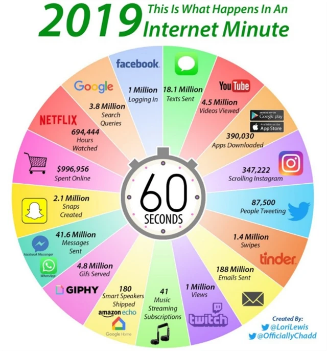 Kolik času denně strávíte na Facebooku, Instagramu či Twitteru? Kolik hodin vám zabere sledování seriálů na Netflixu nebo chatování s přáteli? Pravděpodobně více, než byste sami řekli. Potěšující (a logické) je, že nejste sami. Lidé tráví stále více času on-line, díky čemuž mohou vznikat depresivní infografiky o tom, kolik se toho na internetu stane během jedné minuty.