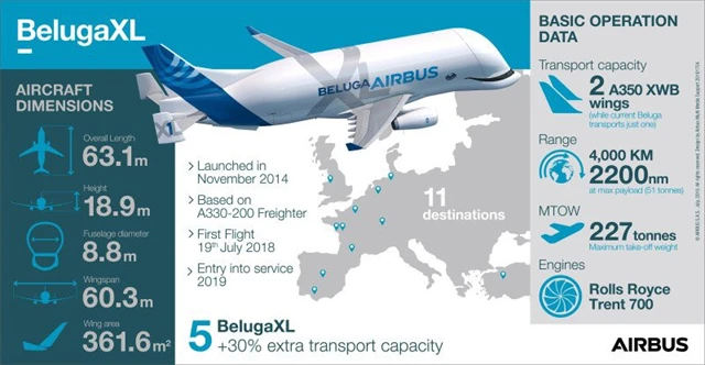 Program BelugaXL byl zahájen v listopadu 2014. Nové stroje vycházejí z nákladní verze letounu A330-200. Letadlo je dlouhé více než 63 metrů, vysoké téměř 19 metrů a může přepravovat více než 50 tun nákladu, o tři tuny více než jeho menší předchůdce. Při maximální kapacitě má letoun dolet 4 000 kilometrů.