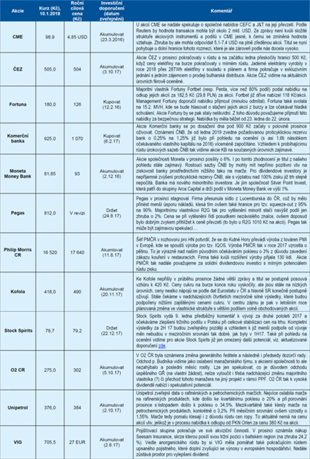 ČS: Lednová strategie pro české akcie (13. 1. 2018)
