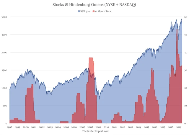 "Loni v září jsem upozorňoval na historickou sérii znamení Hindenburg na burze v New Yorku (NYSE). Krátce poté index S&P 500 zahájil svůj prudký propad, který skončil až o Vánocích," říká Felder. "A před týdnem se na NYSE znamení objevilo znovu. Sice zatím nevíme, zda začne jejich nová série, nicméně i tak se Hindenburg objevil za posledních 12 měsíců 33krát."