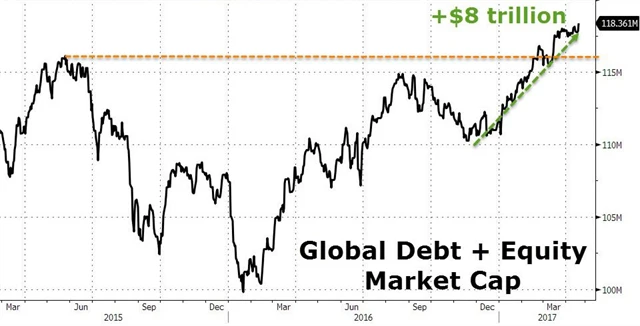 Akciové a dluhopisové trhy od chvíle, kdy byl Trump zvolen americkým prezidentem, ztloustly o osm bilionů dolarů. To není špatné, když uvážíte, že americký prezident ještě ve funkci neudělal nic, co by nadšení investorů jakkoli fakticky ospravedlňovalo, jak právem podotýká například web Zero Hedge (s jedinou možnou výjimkou akcií zbrojařských firem).