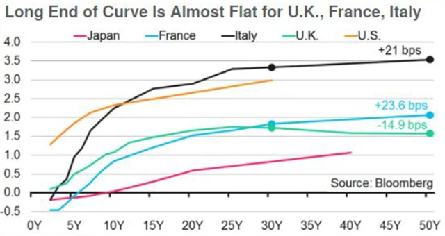 Investoři by rádi dostali oproti 30letým bondům prémii na úrovni jednoho procentního bodu. Té se ale nejspíše nedočkají. Obdobná prémie ve Francii či Itálii totiž je jen zhruba 20 bazických bodů, ve Spojeném království je dokonce záporná.
