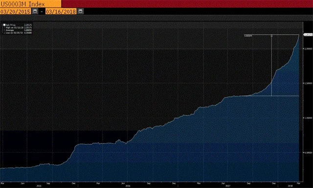 I přes svižný růst LIBOR je očekávání pokračování trendu podle trhu s futures celkem vlažné, konkrétně se vyhlíží růst o dalších asi 45 bodů do konce roku. Zisková příležitost pramenící z dalšího růstu sazby je patrná, oproti loňskému roku existuje ale také větší riziko korekcí.