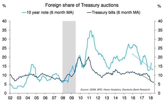 Enormní spotřeba USA navíc také může vést ke stále menší ochotě zahraničních investorů Americe půjčovat, pokud ta nenabídne výrazně vyšší úroky. Poptávka po amerických dluhopisech v posledních letech slábne společně s poklesem hodnoty dolaru, růstem nákladů na zajištění a vzestupem ocenění amerických akcií.