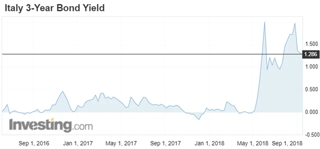 Do cen je přitom promítána nezanedbatelná pravděpodobnost italexitu. Výnosy 3letých vládních bondů naznačují, že trh zohledňuje v cenách zhruba 20% pravděpodobnost znehodnocení o 30 %, což je hodně. Analytici z Fidelity International předpokládají, že italská vláda nakonec schválí rozpočet v souladu s 3% limitem pro deficit, ale trh může v mezidobí zintenzivnit tlak na ocenění.