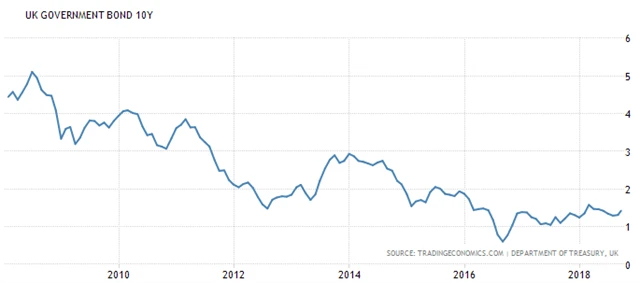 Ve Spojeném království je hlavním stimulem ocenění vládních dluhopisů (i dalších aktiv) brexit. Zatím chybějící dohoda Bruselu a Londýna se promítá do ocenění, stejně jako informace, že po posledním růstu úrokových sazeb Bank of England se očekává v dalších 12 měsících ještě jedno zvýšení. V souladu s nejistotou ohledně dalšího politického vývoje však Fidelity International zaujímá k britským bondům neutrální postoj.