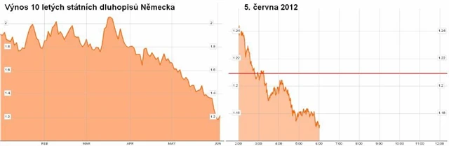 Investoři v Evropě si dopoledne vyslechli několik dalších "pěkných" zpráv z ekonomiky (katastrofální maloobchodní tržby, PMI ve službách hluboko pod 50, horší podnikové objednávky v Německu). No a nelenili a od samého rána nakupovali německé dluhopisy. Jejich výnosy se tak dostaly hluboko pod 1,2 %. Až se Evropa pochlubí svou inflací, dáme si dvě a dvě dohromady a bude to jasné - malá ztráta je v současnosti pro investory lepší než nejistota.