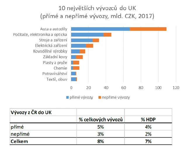 Mimochodem, ve Zprávě o inflaci má ČNB speciální box "Obchodní vztahy ČR se Spojeným královstvím v posledních letech", kde ukazuje, že vývozy do Británie dosahují 205 miliard korun. To jsou ale jen data o přímých vývozech. Po započtení nepřímých vývozů se údaj zvýší o více než 50 %, takže potenciální šok plynoucí z velice tvrdého brexitu ČNB podhodnocuje.
