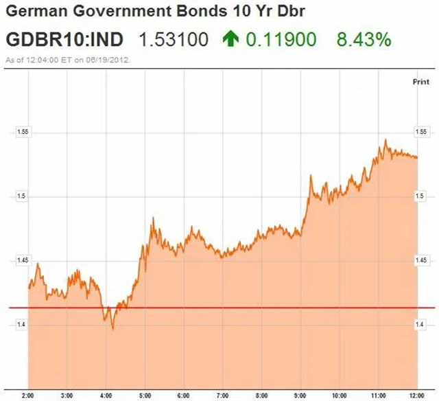 Na řecké frontě optimismus, vládní koalice by mohla být oznámena každou hodinou, v Mexiku na setkání G-20 se přifukoval záchranný kruh Mezinárodního měnového fondu (aktuálně 456 miliard USD) a na dluhopisovém trhu se uklidnila situace. Tedy uklidnila - investoři jasně ukázali, které země podle nich budou "dotovat" evropské záchranné operace, a které naopak s přísnějšími nebo méně přísnými podmínkami budou čerpat ze záchranných operací miliardy eur. Tlak na německou kancléřku Merkelovou roste, dluhové břemeno Evropy by na společných "evropských zádech" viděla ráda celá řada jiných politiků, nejspíše i americký prezident Obama.