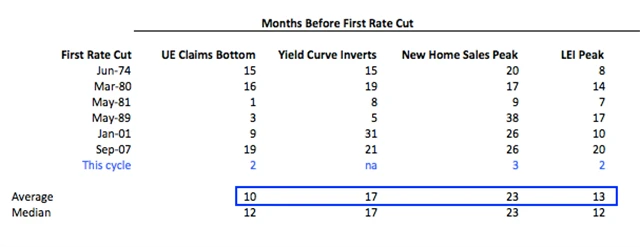 Situace se ve zmíněných případech (navzdory dnešnímu zkreslenému pohledu) podobala té současné v tom, že média varovala před recesí a hojně psala o možnosti snižování úroků. Na rozdíl od minulosti ale nyní ekonomická data nevypadají špatně. Nezaměstnanost (UE) jen před dvěma měsíci klesla na 50leté minimum, prodej nových domů byl na vrcholu před třemi měsíci, předstihové indikátory (LEI) před dvěma měsíci a k inverzi výnosů 10letých a 2letých dluhopisových výnosů ještě nedošlo.