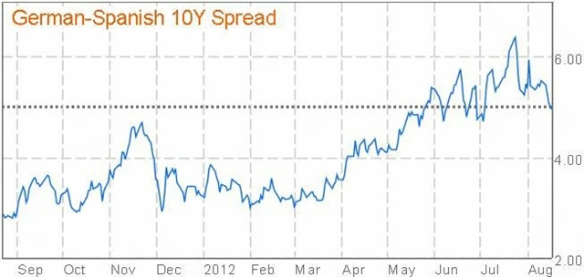 Prezident ECB Mario Draghi přislíbil, že ECB bude nakupovat dluhopisy Španělska a Itálie, ovšem mluví se o podmínce v podobě žádosti dané země o zahraniční pomoc. Německý postoj je přitom poněkud nejednoznačný: Na jednu stranu podpora opatření ve smyslu "vše pro záchranu eura", na straně druhé však například sobotní vyjádření ministra financí Schäubleho, podle něhož "nelze financovat státní dluhy z peněz ECB", bylo by to stejné jako "řešit osobní problémy drogami".