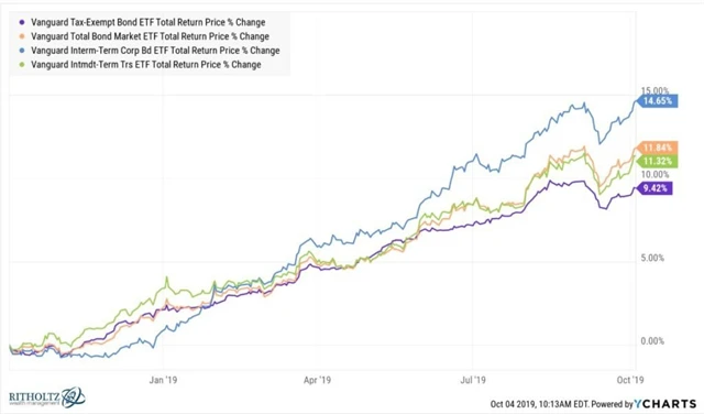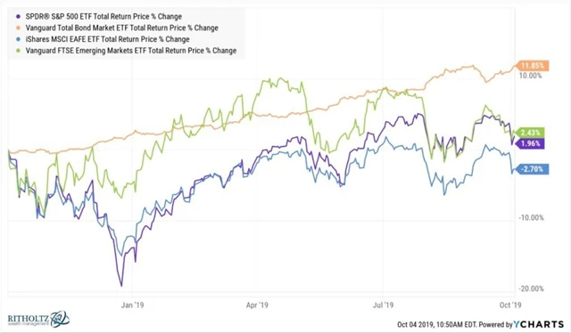 Možná nejlepší možností pro všechny, kteří nechtějí dělat výrazné změny v portfoliu, je rebalancování. Dluhopisy po výprodeji na konci roku 2018 překonaly v posledním roce svým cenovým růstem i americké akcie, rozumným řešením by tak mohla být investice zisků z držení dluhopisů například do akcií.