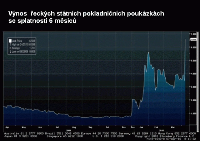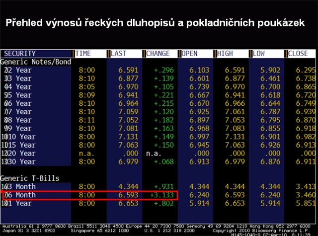 Výnos řeckých státních pokladničních poukázek se splatností 6 měsíců podle agentury Bloomberg vyskočil o 3,13 procentního bodu na 6,6 %. Tento rapidní pohyb vzhůru má jednoduché vysvětlení: