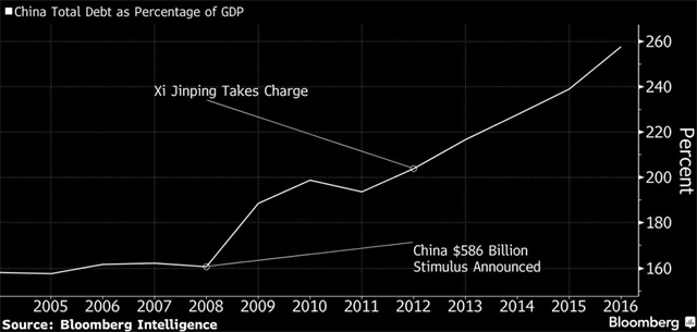 Na rozdíl od rozvinutých zemí, kde se růst dluhu v posledních letech odehrával hlavně na úrovni vládních institucí a domácností, úvěry v Číně rostly především u firem a místních orgánů, navíc většinou mimo oficiální rozvahy. Docházelo opakovaně k inflaci prakticky u všech aktiv, od komodit přes nemovitosti až po akcie.