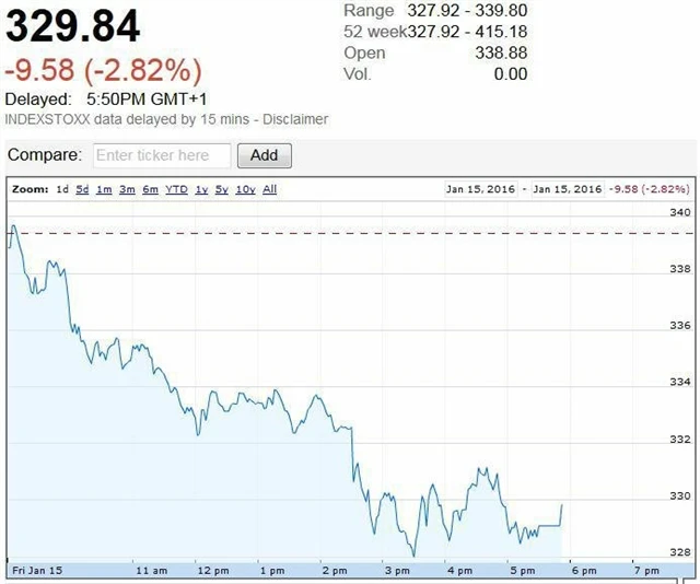 Panevropský index FTSEurofirst 300 odepsal v pátek 2,79 % a uzavřel na hodnotě 1 297,10 bodu. Za celý týden vykázal už třetí týdenní ztrátu v řadě. Užší index EURO STOXX 50, který sleduje hlavní emise v eurozóně, oslabil o 2,37 % na 2 952,48 bodu.