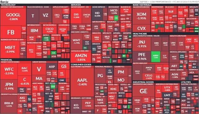 První dva týdny roku 2016 jsou v součtu pro indexy Dow a S&P 500 (stejně jako samotný první týden) nejhorší v historii. Za druhý obchodní týden roku hlavní indexy odepsaly 3,34 % (Nasdaq Composite), 2,19 % (Dow) a 2,17 % (S&P 500).