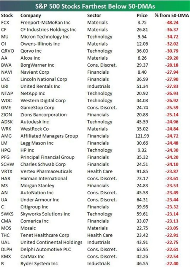 Na americkém trhu je aktuálně drtivá většina titulů pod svým 50denním průměrem, většina hluboko v pásmu přeprodanosti. Kdy se pád trhu zastaví, nikdo neví, uvedené tituly jsou ale každopádně nejhlouběji pod 50denním průměrem.