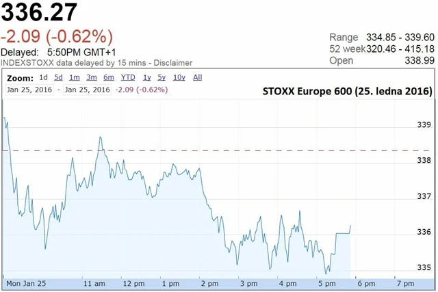 Britský FTSE 100 klesl o 0,39 % na 5 877 bodů, francouzský CAC 40 odepsal 0,58 % na 4 311,33 bodu a německý DAX uzavřel slabší o 0,58 % na 4 311,33 bodu. Regionální STOXX Europe 600 uzavřel se ztrátou 0,62 % na 336,27 bodu.