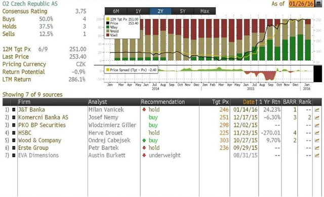 "Naše strategie funguje. Po sedmi letech jsme zastavili pokles výnosů a zvýšili ziskovost o více než 40 %. Pokračujeme v transformaci O2, což v letech 2015 a 2016 vyžaduje zvýšené investice. Přesto jsme v roce 2015 vygenerovali meziročně o 31 % více hotovosti," uvedl Tomáš Kouřil, místopředseda představenstva a finanční ředitel společnosti. "Plánujeme vyplácet atraktivní dividendu, za rok 2015 zamýšlíme navrhnout dividendu na úrovni 16 Kč na akcii. V lednu také znovu spustíme zpětný odkup akcií jako další formu odměny pro naše akcionáře," doplnil.