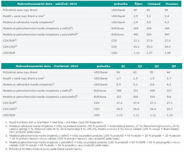 Podle analytiků stojí za pozitivními čísly především vysoké rafinérské a petrochemické marže. Vliv mělo i navýšení objemu zpracované ropy díky dokončení akvizice podílu ve společnosti Česká rafinérská. Jediným vlastníkem rafinérie se Unipetrol stal na konci dubna 2015. Analytici nevylučují, že by společnost mohla za loňský rok navrhnout výplatu dividendy. Unipetrol dividendu naposledy vyplatil za rok 2007.