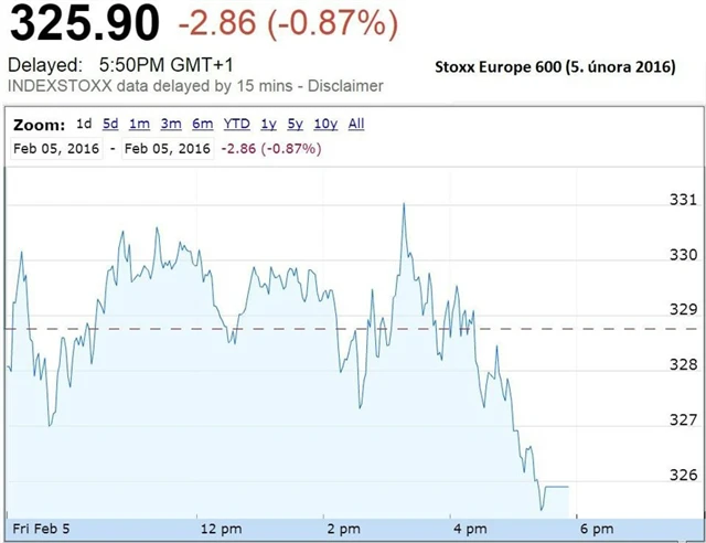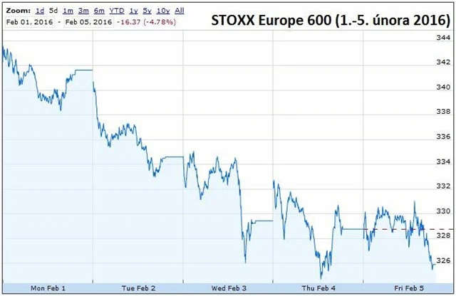 Za celý uplynulý týden FTSE 100 odepsal 3,86 %, CAC 40 4,89 % a DAX 5,22 %. STOXX Europe 600 od pondělí do pátku klesl o 4,78 %.