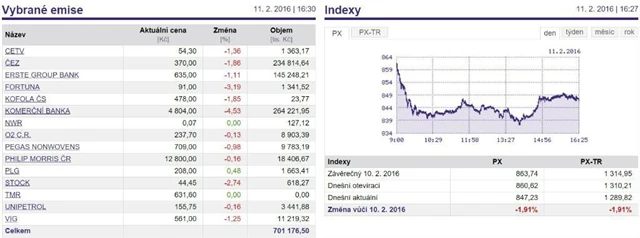 Index PX ve čtvrtek odepsal 1,91 % na 847,23 bodu.