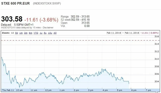 Po středečním oživení obnovily pokles především evropské banky. Akcie francouzské banky Société Générale po neuspokojivých hospodářských výsledcích spadly o více než 10 % a do mínusu se vydala i Deutsche Bank, která ve středu výrazně posílila. Většina italských bank se pohybovala v mínusu kvůli přetrvávajícím obavám o zdraví italského bankovního sektoru. Italská vláda ve středu schválila balíček opatření, jenž by měl přispět k vyčištění bank od nesplácených úvěrů.