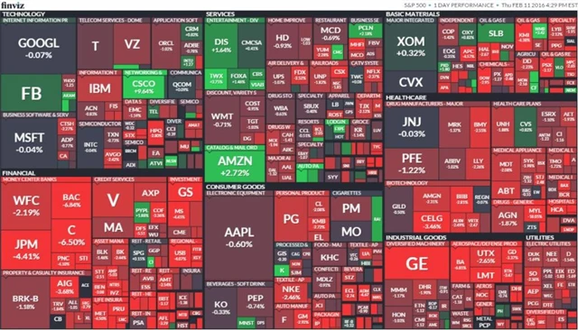 Akcie bank padaly nejvýrazněji, a to kvůli obavám, že záporné úrokové sazby, které ve snaze podpořit hospodářský růst zavedly centrální banky v eurozóně a v Japonsku, jsou spíše součástí problému než jeho řešením. Akcie Bank of America například ztratily téměř sedm procent.