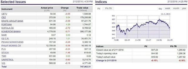 Index PX v pátek odepsal 0,15 % na 845,92 bodu. Celý týden byl ale pro něj velice nepříznivý, když spadl o 6,5 %.