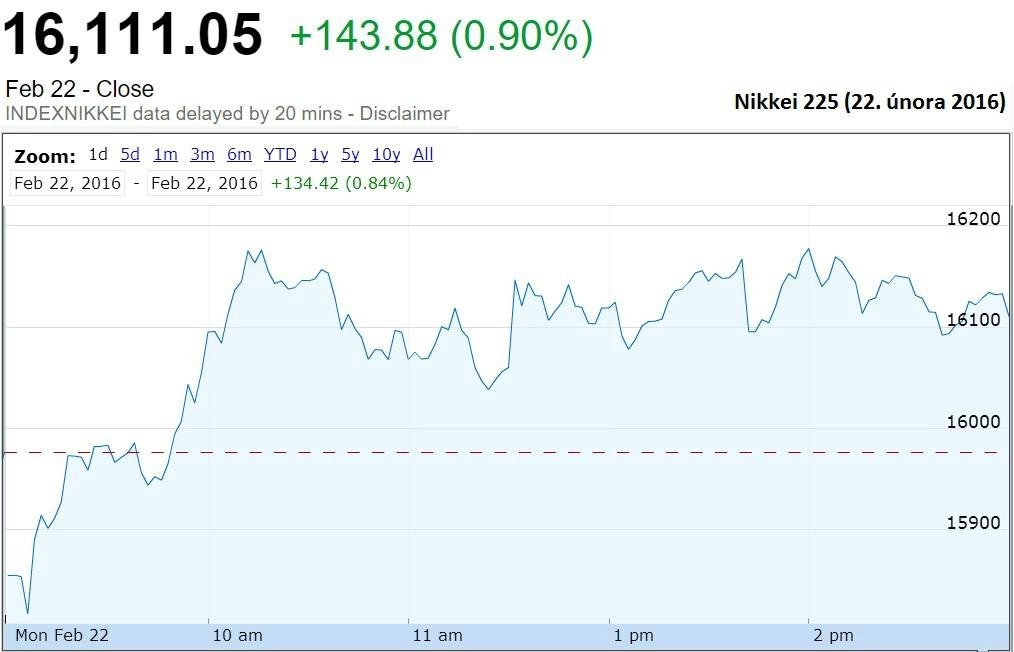 Japonský Nikkei 225 přidal 0,9 % na 16 111,05 bodu, přičemž japonský jen se udržoval nad hladinou 112 USD/JPY. Index nákupních manažerů ve zpracovatelském sektoru Japonska v únoru klesl na 50,2 bodu, jak ukázala předběžná data agentury Markit (odhad: 52 bodů, leden: 52,3 bodu).