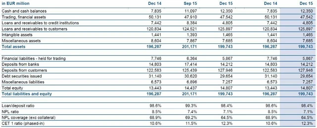 Čistý příjem z poplatků a provizí byl ve 4Q2015 489,2 milionu eur a za celý rok dosáhl 1,86 miliardy eur. O rok dříve byl výsledek za čtvrté čtvrtletí 497,1 milionu eur a za celý rok 1,87 miliardy eur.