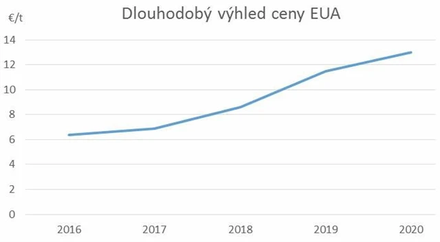 Dlouhodobě by se cena povolenky i přes současný pokles měla pohybovat právě mezi 8 a 9 EUR za tunu. K prolomení dlouhodobého růstového trendu ceny povolenky došlo 11. prosince loňského roku. Po pomalém zotavování nakonec cena uzavřela rok 2015 na 8,29 EUR. Začátkem roku 2016 pak pokračoval prudký klesající trend. Od počátku letošního roku se tak cena povolenky propadla o více než 40 %.