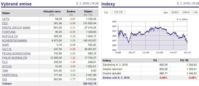 Index PX ve středu klesl o 0,66 % na 886,71 bodu.