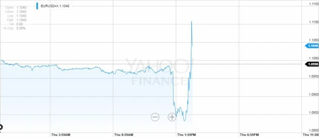 Po oznámení snížení sazeb v eurozóně a rozšíření programu odkupu aktiv o kvalitní firemní dluhopisy nebankovních společností euro nejprve ztrácelo. Když ale Mario Draghi na tiskové konferenci odmítl myšlenku dalšího snižování sazeb v dohledné době, euro ztráty napravilo a vůči americké měně začalo posilovat.